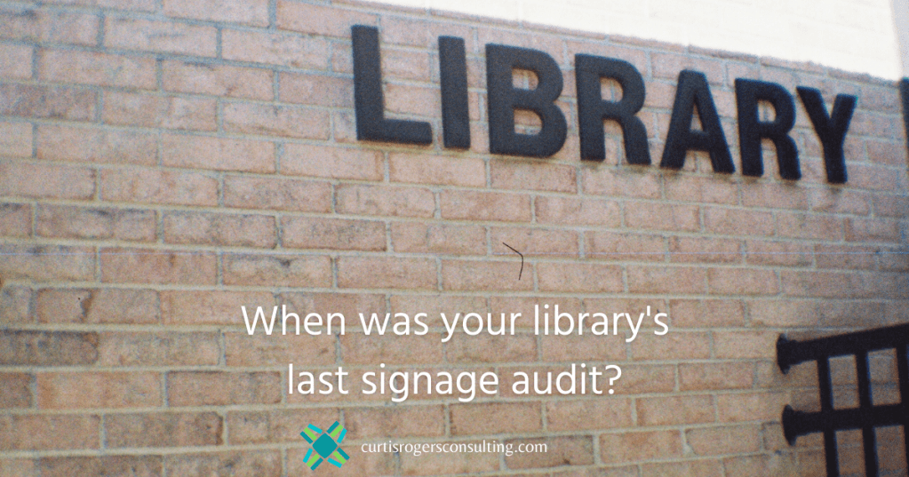 On January 27, 2022, I conducted a free webinar for WebJunction titled, Library Signage: Effective Crisis Communications. The most important takeaway is that I wanted attendees to THINK CRITICALLY about each and every sign in their library. Part of this process is to conduct a signage audit.
