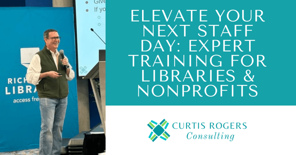 Are you looking for a dynamic and experienced speaker for your library or nonprofit’s next staff education day? I can help. With over 35 years in libraries and a doctorate in education, I bring both practical expertise and an engaging presentation style to every session. Whether you’re planning a full-day retreat or a series of short workshops, I tailor my programs to meet the unique needs of your staff and organization.